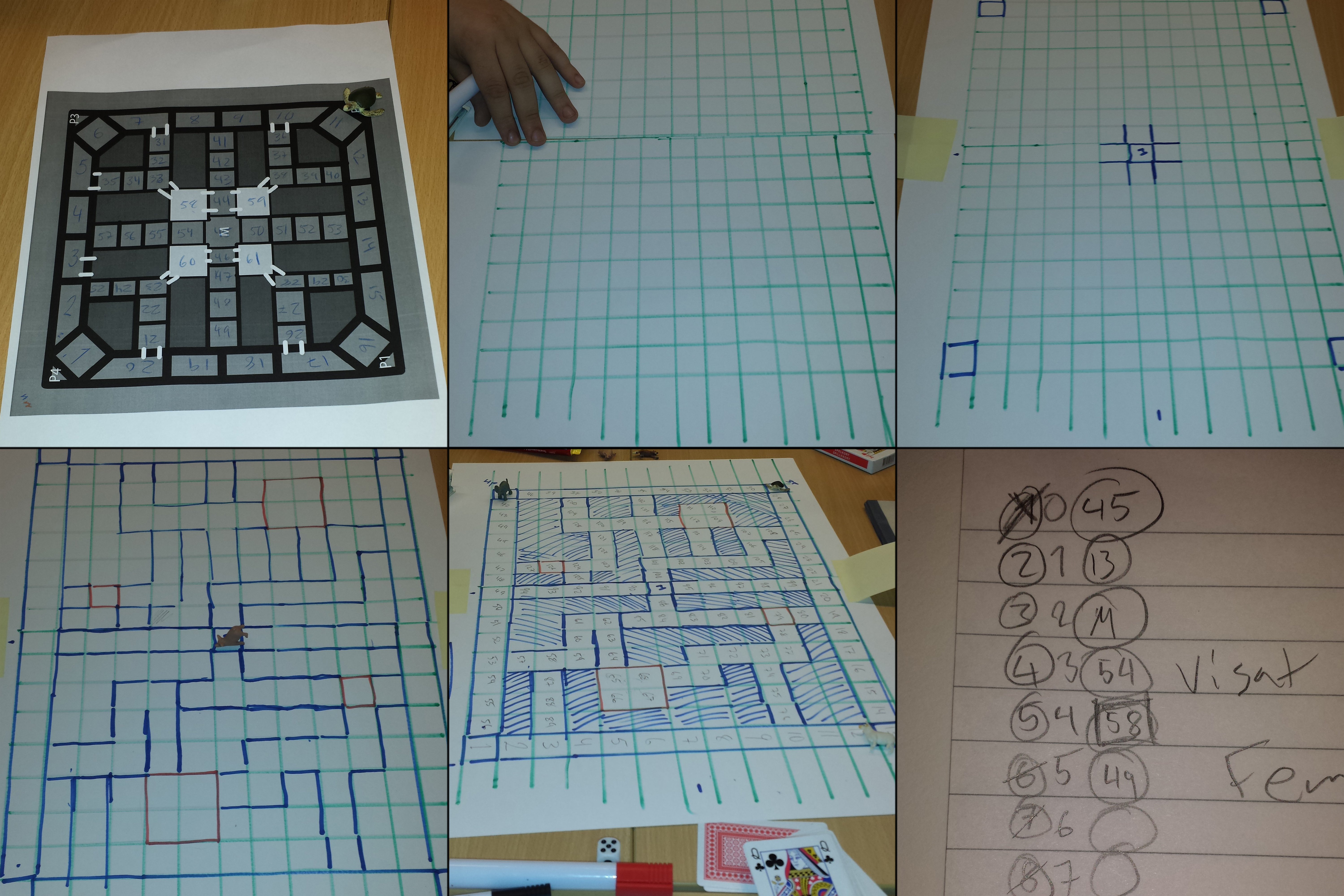 After today’s lecture my group and I worked together for a couple of hours testing how our movement-system would work physically. We had a map with tiles, printed out from before but we realized after just 4 rounds it was way too small and the rooms where you are able to search for the treasure was located too close to the predators start-location. There for, we drew a completely new map with 133 tiles and tried balancing it better but at the same time making sure it wasn’t a 100% symmetrical.