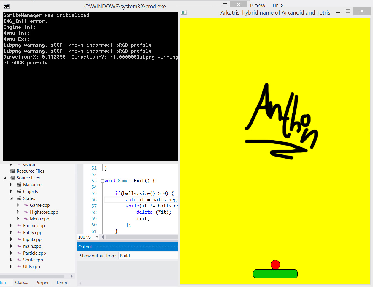 I’ve also changed the plan a bit and removed those tetris falling blocks and replaced it with static blocks in the top(like arkanoid) but with a few changes that will come as a surprise later. Ive mostly made this decision because we needed to have some read-from-file-level-system. It felt like that is our only missing part now, except the sound and music managers.