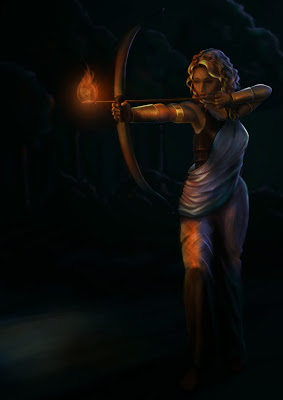Today we had a guest lecturer in the 2D-course, freelance illustrator Silvy Strand. She started with a lecture on what it is like to work as a freelancer and gave some good tips on what you need to think of when starting a buisiness. Then she demonstrated two approaches to colouring a drawing and let us have a go at it. One of the techniques was one that I am more familiar with, blocking in the colours and then add shadows and highlights. I believe colour is probably not my strongest point yet, I do know the basic theory but I find it very difficult choosing the right colours and getting them to go together as I see it in my head. Silvy was very helpful as I had some difficulties getting started, she told me a good way is to start with colouring the entire image with the general colour of the background and then the light sources. In my case it is a forest in moonlight, meaning a desaturated, dark blue-green. It felt very obvious as she told me this and it got a lot easier to pick up from there. Here is how it turned out… and here is a closeup.
