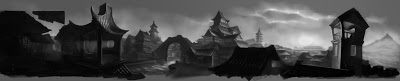 As there was a large area that ended up in shadow I decided to put light in the windows of one building to keep it from being just a dark area but I am not completely happy with the result.