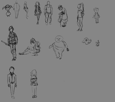 Today was the first day of the Game Development course, in the teams from the major assignment in the Introduction to Game Design-course we got to choose one of the other teams’ designs to develop. This time the first group meeting was a lot more structured and I felt that unlike last time we actually have some clue as to what we are doing. It does not at all feel like it did when creating “With Love…” although it is clear that we are still a bit inexperienced. I do wish that someone would have chosen to develop “With Love…”, but I guess that just means that perhaps we can do it ourselves some day. We have also lost a team member unfortunately, so we will get to welcome a new member tomorrow. Our lead designer asked me to do some thumbnails just to explore what direction we want to take the game we have chosen, which is basically a stealth game, the concept is very loose at the moment. Here are some really fast sketches (about 1 min) that I threw together just to get the imagination going.