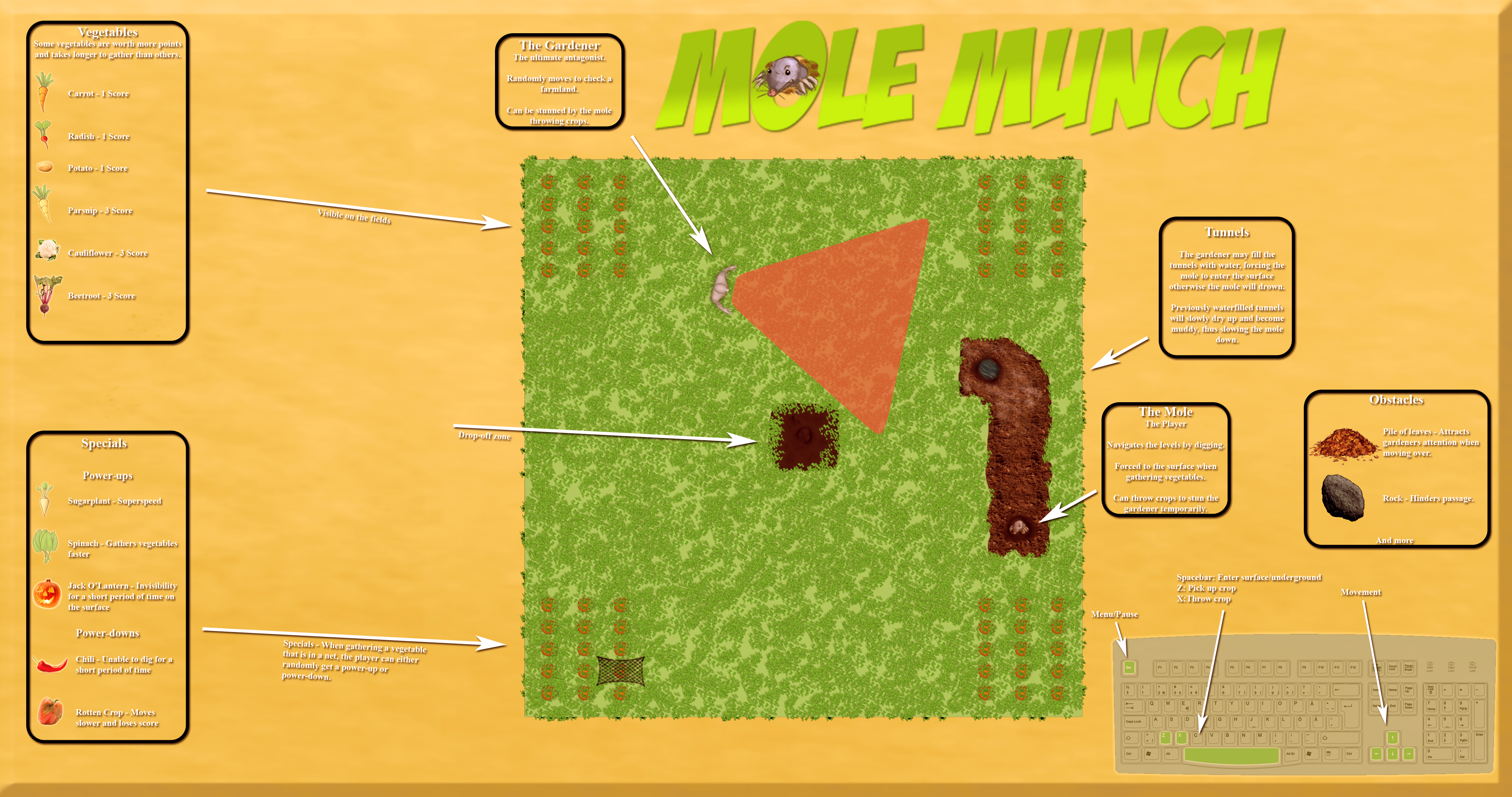Throughout the project we lacked direction, the majority of the work done was basically brainstorming and putting a general idea down, then flesh it out as we went along. This, sadly, leaves a sort of mess that needs to be tied together in some way. However, that becomes increasingly difficult the longer you go on. This could have been improved upon massively by better planning from the start in form of writing down targeted milestones and so forth for each week.