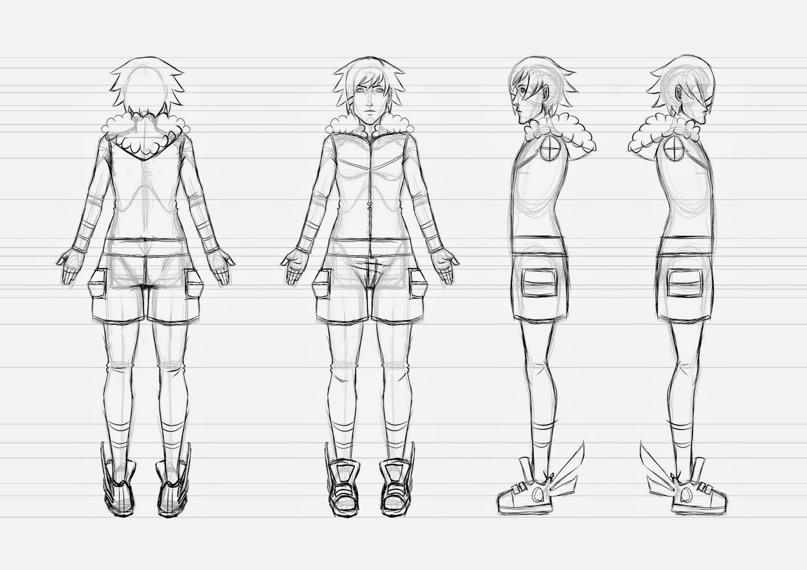 Following to the thumbnail assignment we now were to choose just one of them, and construct a character out of it. I choose this one. The reason was because I couldn’t choose. So I decided to challenge myself and do a female character, as I’ve had difficulties with females. This one was the one I liked the most of the female thumbnails I had, because of the linear highlights which speaks to the image I have of the game world as a dark neon city. As for the clothes I think they fit the profession of a parkourist but also with designer details. Making her look interesting although she is a regular human. And this thumbnail turned into this. Her design was kept almost to the letter, except for her hair. Her hair was changed because it would fir more to her personality design of a confident and reckless youth. The purpose with this this assignment, to make a turn around of a character, was becouse a turn around is needed when modelling a character. A modeler use this sheet to be able so turn it to 3D. It is very important that the pose is simple and that every design element is seen. For example, that is why the arm is removed when viewed from the side, so that the modeler can see what is beneath. |