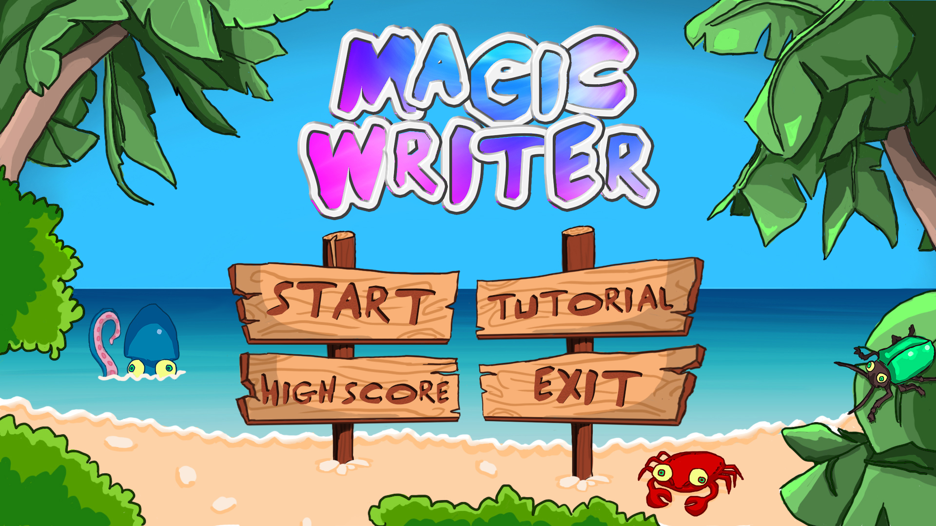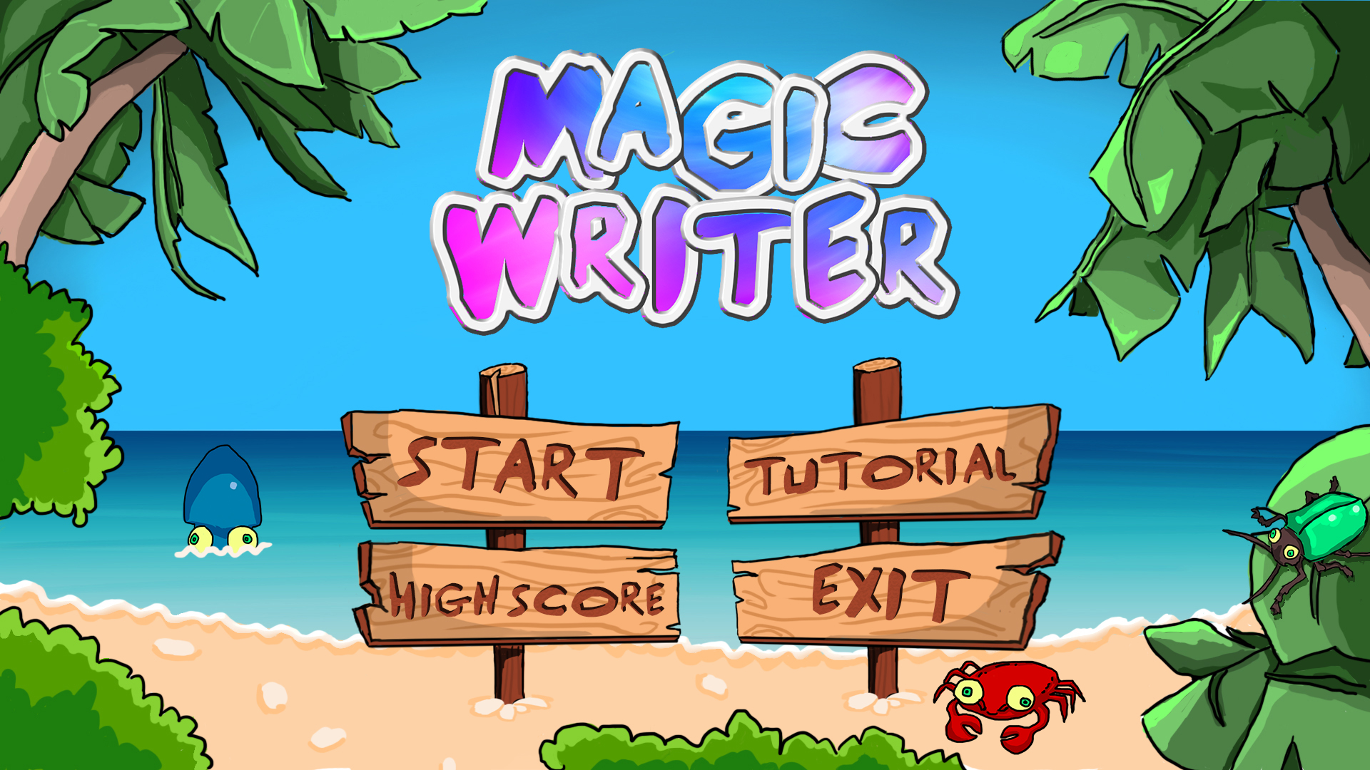 Vår grupp ska under tio veckors tid förvandla ett spel koncept som heter Magic Writer till ett fungerande spel. Det är första gången jag jobbar med ett projekt som kräver så mycket tid och forcerad kreativitet av mig. Som grafiker har jag ägnat mig mest åt designa vårt spel, designat menyer, mindre objekt, bakgrunder, logga m.m. Min största utmaning förra veckan var att designa knappar åt spelet. Jag hade veckan innan designat en logga och en bakgrund för menyn som jag var nöjd med men nu skulle jag göra knappar som skulle passa in med bakgrunden. Jag ville låta loggan sticka ut som den redan gör då den bryter med resten av stilen. Det var viktigt att inte designa knappar som drar fel uppmärksamhet från loggan men det kändes väsentligt att göra unika knappar.