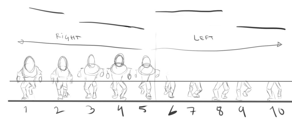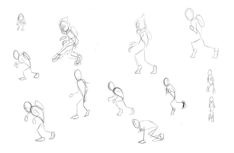 This is the sketch that I went with as i feel that it conveys what I want the most out of all the sketches. From here i went ahead and planned out a walk cycle that I felt fit with the sketch.