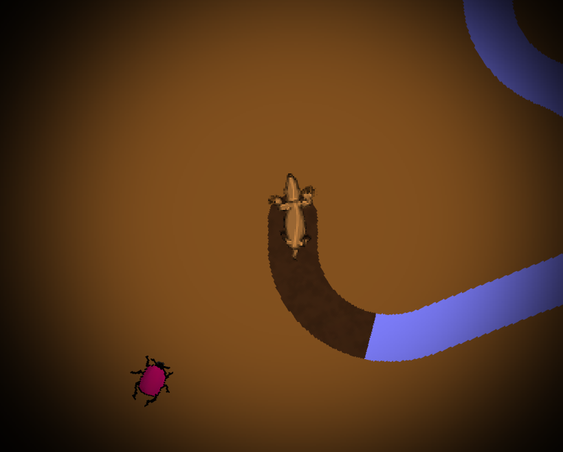 Denna veckan har jag fortsatt att jobba på vattnet. Mellan förra bloggposten och denna så har vi i gruppen fått ett fungerande vattenflöde, men vattenflödet skapades på spelarens position och hade ingen kollision. Det första jag gjorde var att skapa kollision mellan trädgårdsmästaren och hålen Spelaren har ingen kollision med hålen på ovansidan, dem är bara där för att demonstrera att det är vatten i tunnlarna i underjorden. Däremot ska vattnet i tunnlarna ha kollision med spelaren. Detta var ett av de stora problemen jag hade den här veckan. För att gå igenom hur kollisionen med vattnet fungerade så måste jag först gå igenom hur vattnet fungerar. I kort så skapas en pixel på trädgårdsmästarens position när trädgårdsmästaren och hålet kolliderar. Denna pixel skapar sedan flera pixlar runt sig själv, då får vi en effekt av att de blåa pixlarna flyter i tunnlarna. Om ni vill läsa mer om hur vattnet fungerar så kan ni läsa om det här https://bergjens.wordpress.com/2015/02/26/update-3-on-project-mole-munch/. När man ska skapa kollision mellan spelaren och vattnet så uppstår ett problem. Eftersom att vattnet inte är ett objekt utan bara är pixlar så går det inte att kolla på vattnets kollisionsbox. Istället kan vi använda oss av en teknik då vi kollar färgen på en bild. Det första som behövdes göra för att kunna använda denna tekniken var att skapa en bild av vattnets sprite. Detta var lätt att göra genom SFML’s funktioner. När detta var gjort så kunde vi använda den bilden för att kolla positioner och RGB värden. För att veta vattnets position så kollade vi vart på bilden som RGB värdet var det samma som vattnet. Till exempel om vattnets RGB var 128, 128, 255, så kunde vi kollade var på bilden som en pixel har det exakta RGB värdet. Sedan kollade vi positionen på spelaren och jämförde med positionen på bilden av vattnet. Om det var exakt samma position så fick vi resultatet sant och då kallades kollision. Just nu händer inget när de kolliderar, men vi ska lägga till en animation som spelar upp när mullvaden dör. Såhär ser vattnet ut när man gräver i tunnlarna. |