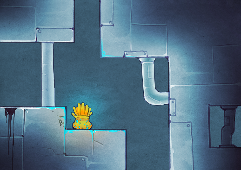 My assignment was to hand-draw the map, following the structure of the level design. We chose to do our levels this way because we felt it was important for the feeling of the game to have more detailed maps, instead of regular tiles. I designed the level keeping the concept picture I drew some time back in mind, since there was nothing else specific we had agreed on with the group. Here, below, is the concept: