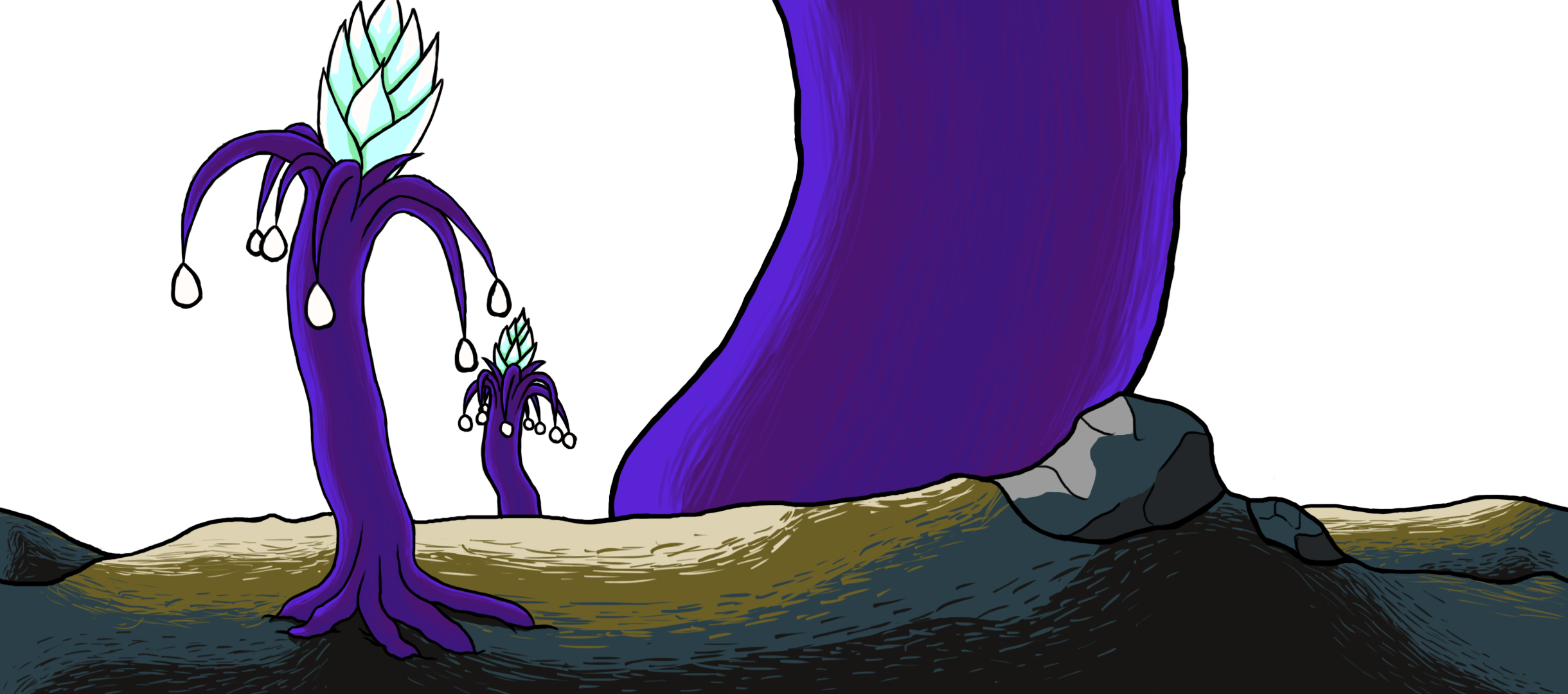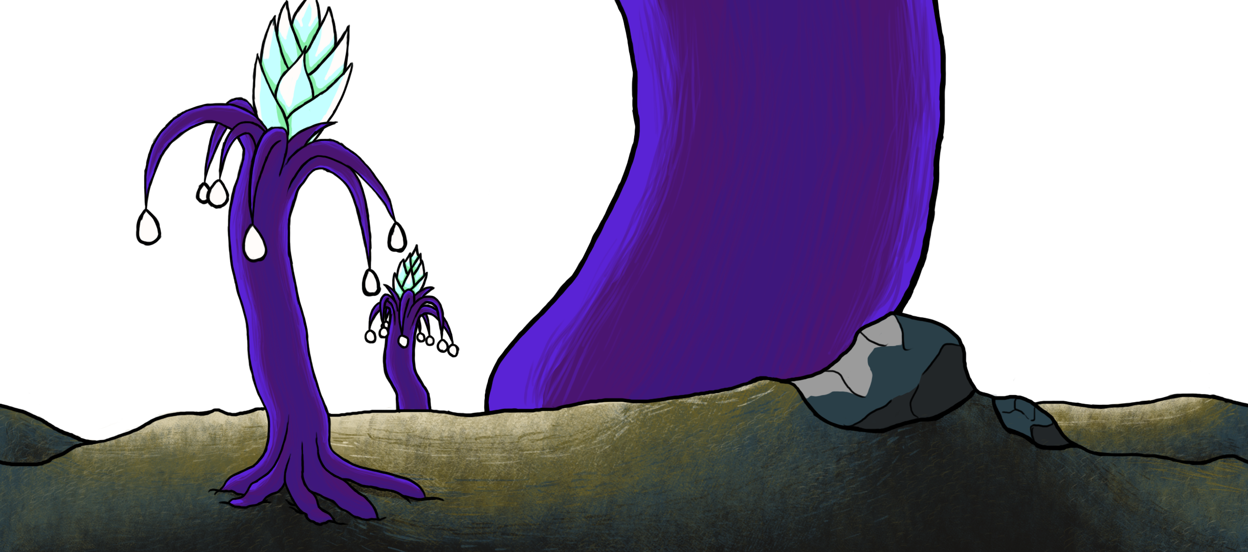 Interesting week. My work on the background image never feels done. There is always something that I want to add or change, but this week it has not been as clear to me as to what need to be changed or added. I have been struggling a bit with how flat the image looked in some places. Especially on the mountain in the background because it had large surfaces of basiclly the same color. I have also tried to emphasize just a little bit more that the light comes from the moon. And lastly, I have yet again added illumination from the seeds hanging in the trees, as well as from the flower this time. I also kept the color of the illumination to one color this time around, because it felt more natural. This could be easily changed later on though, depending on feedback.