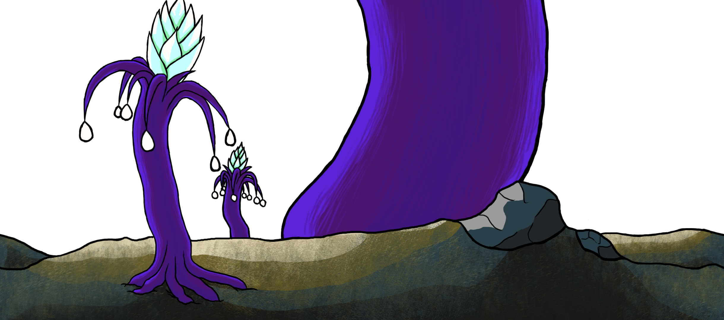 I was really happy with the results, but looking back I had noticed that I walked too far away from the art style that had been established up to this point. I had to go back and rethink how I wanted to proceed. In the end, the solution to my dilemma was simple. Add more layers of colors between the existing ones to smooth out the transition and try to avoid sharp borders between them.