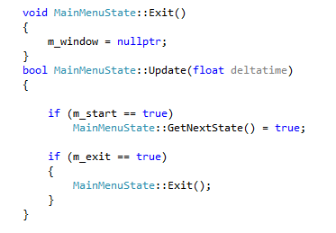 m_start will check if the player has pressed the Start button in which case the game will move to the next state, that is, the game state.