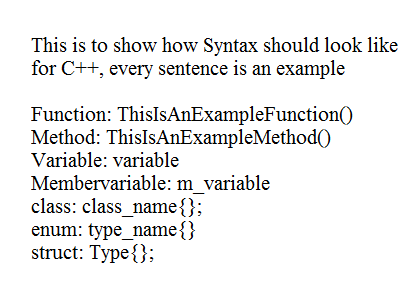 The syntax also matters since we’ll be handing in the source code for the Spelprogrammering II course. Therefore, I took it on me to look through the entire source code so that it all looks good codewise. This is for readability in code, but also because the syntax for writing code should follow a certain pattern. Below is a picture made to illustrate the difference between good syntax and bad syntax (the picture is made by me, therefore there might be some small errors in the syntax, but it should be relatively correct). For exact way to write syntax, look up a site like http://www.cplusplus.com/ or similar.