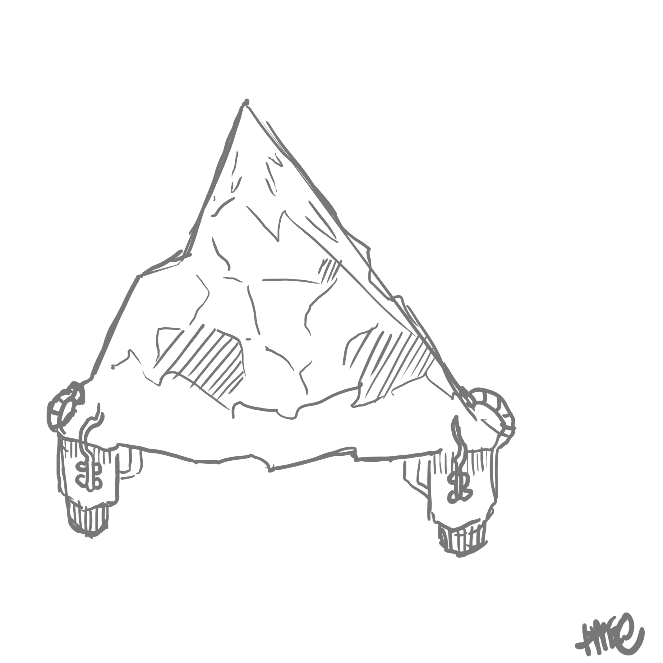 Hello my name is Theo Bengtsson, this is a blog I will use to document my progress in game-design at Campus Gotland. My group is creating a game based on an giraffe fighting through space, my role as an Art director is to supervise the art direction in the game, I’m primarily in charge of designing the characters, animate them and design other different art-assets for the game. It’s demanding but fun, especially since there are only two people including myself that studies graphics in our group. This first blog week i’ve been working on finishing the design of the boss in the game. When designing the boss I got the guidelines that it was going to be an triangle. The first thing that struck me was: how do you make something in the shape of a triangle funny or recognizable. I started to make a very classical mountain with a pair of jet-thrusters. It looked ominous but it lacked something. The boss needed something to attack with something that goes well with the design. I couldn’t just slap a cannon on top of it, it would look completely nonsensical.