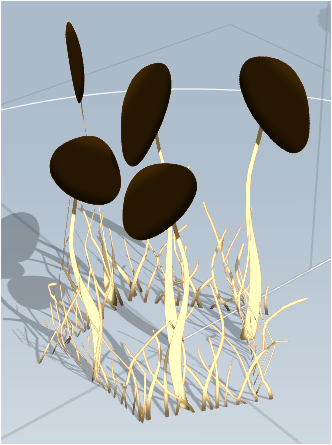 The planes were then added into speedtree, and were then placed into patches that could then be placed in the game world. Due to how the game world is built however, each part of the vegetation had to be placed individually. Usually you can use the brush in the engine to simply paint the world with grass and stuff, however in our case that was not possible. A few more. There were close to a dozen different parts similar to these. Once placed in the speedtree they could then be saved and imported to unity.