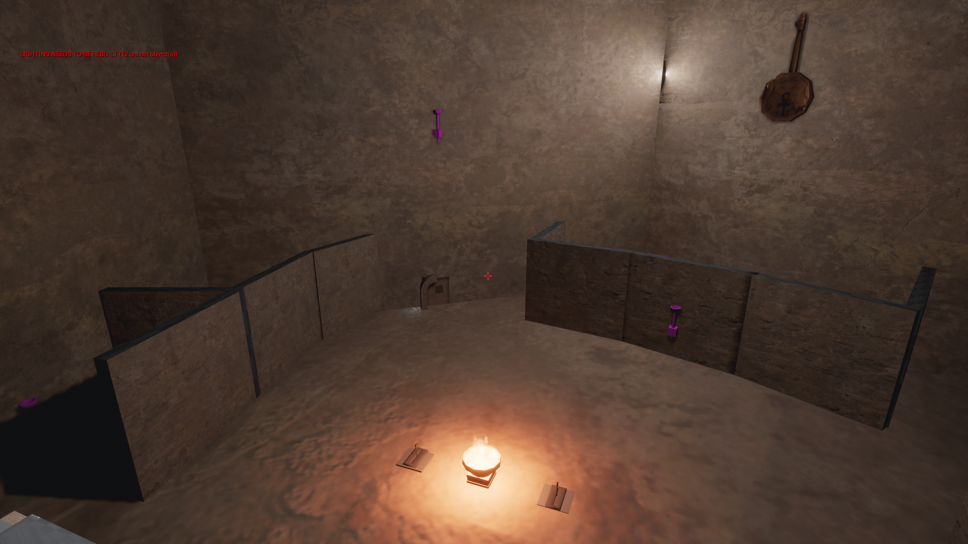 Lately I have been working a lot on the Horus puzzle. I have playtested and tweeked the room and placement of the torches to make the puzzle a bit more interesting. And I also came up with an additional perspective puzzle which we will add to this room during the next week.