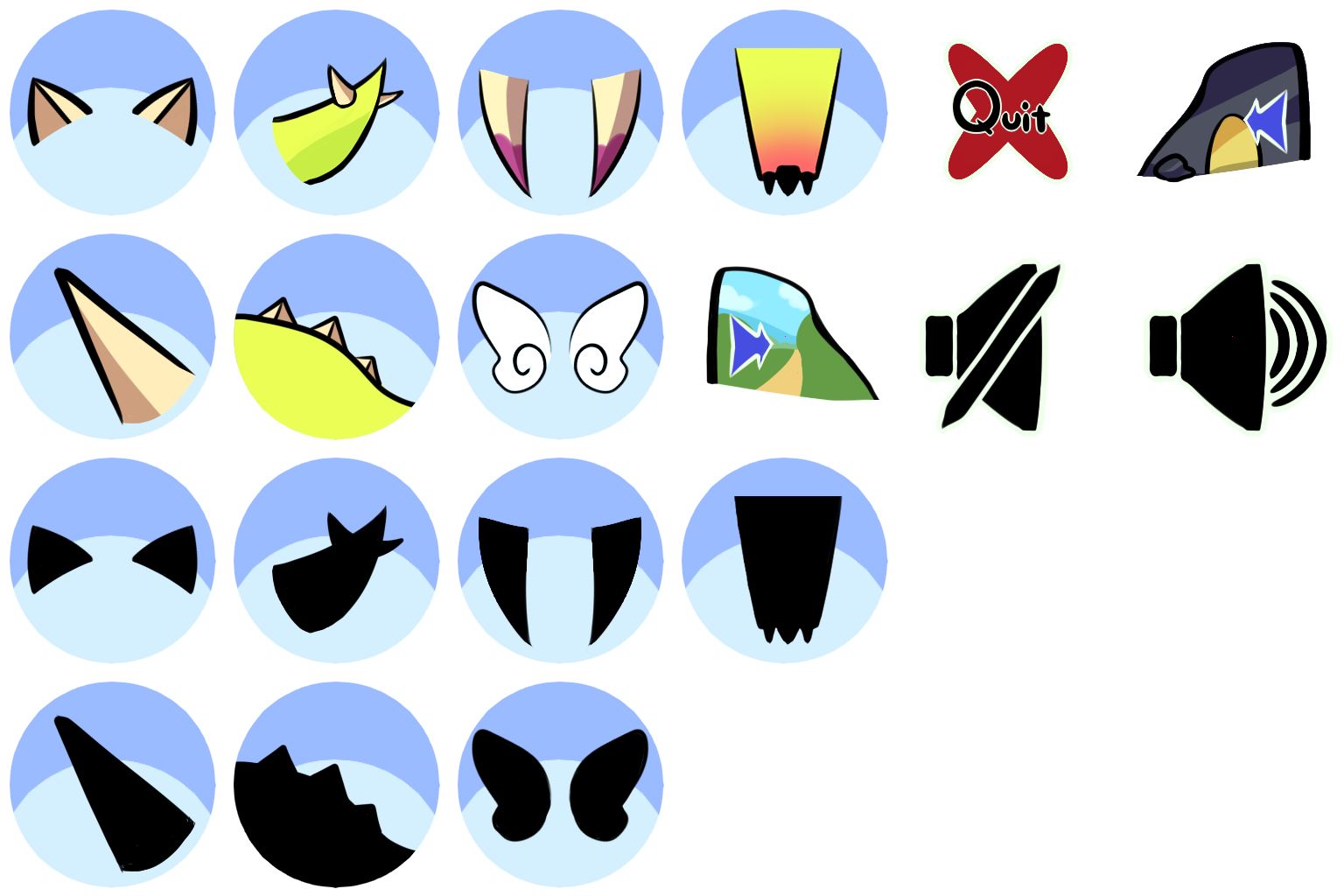 I’ve also been working on some 2d stuff, like icons for the UI as well as a background screen for the walkmode. Because I wanted the UI icons to feel more playful and fit the cartoony style I made them a bit rounder, a bit more hand drawn in order to get that playful style, more organic shapes. The background in the walkmode is a simple background in flat colours almost mimicking vector art, the hard shades were also made to match the cel shaded style we have in the game. It doesn’t follow the exact same logic as our shader, but it still bears a resemblance to the style; making it stand out enough and show the scene change without breaking the immersion and overall aesthetic of the game. Walkmode background (left) and Icons and UI elements (Right) |