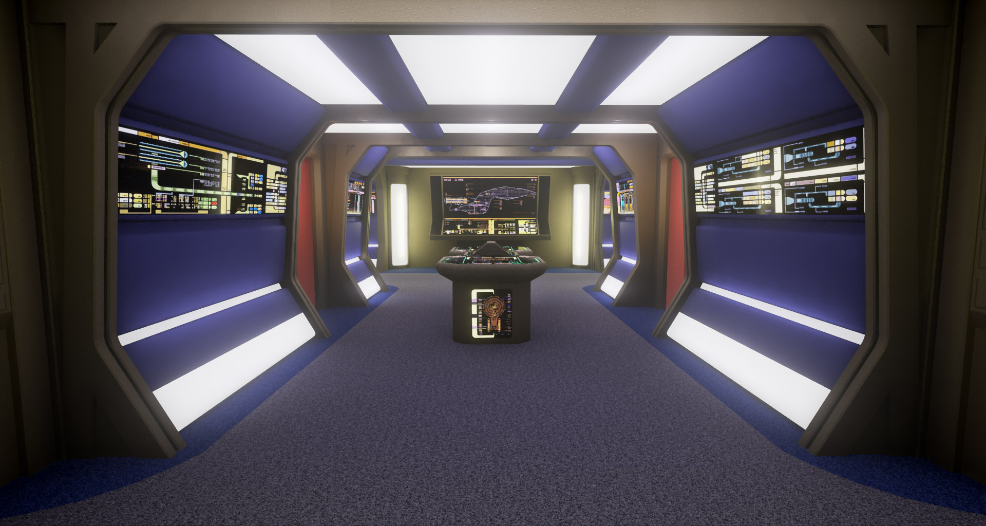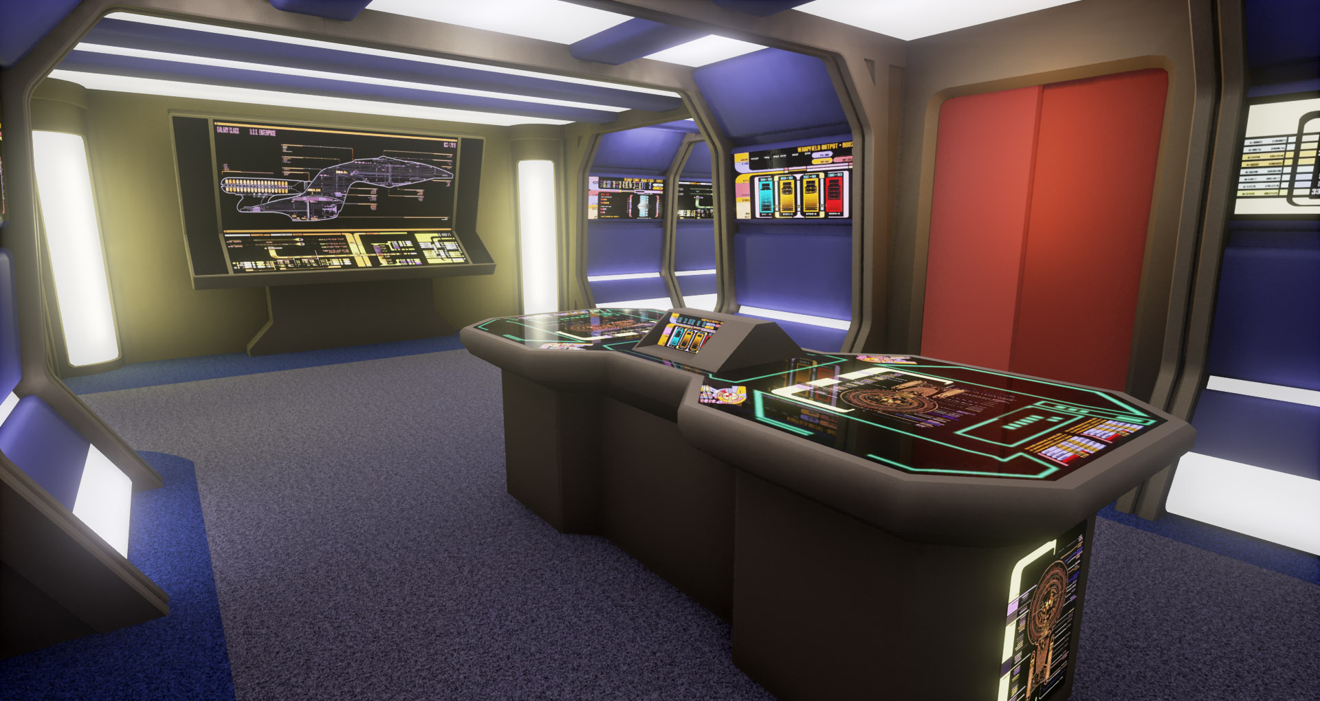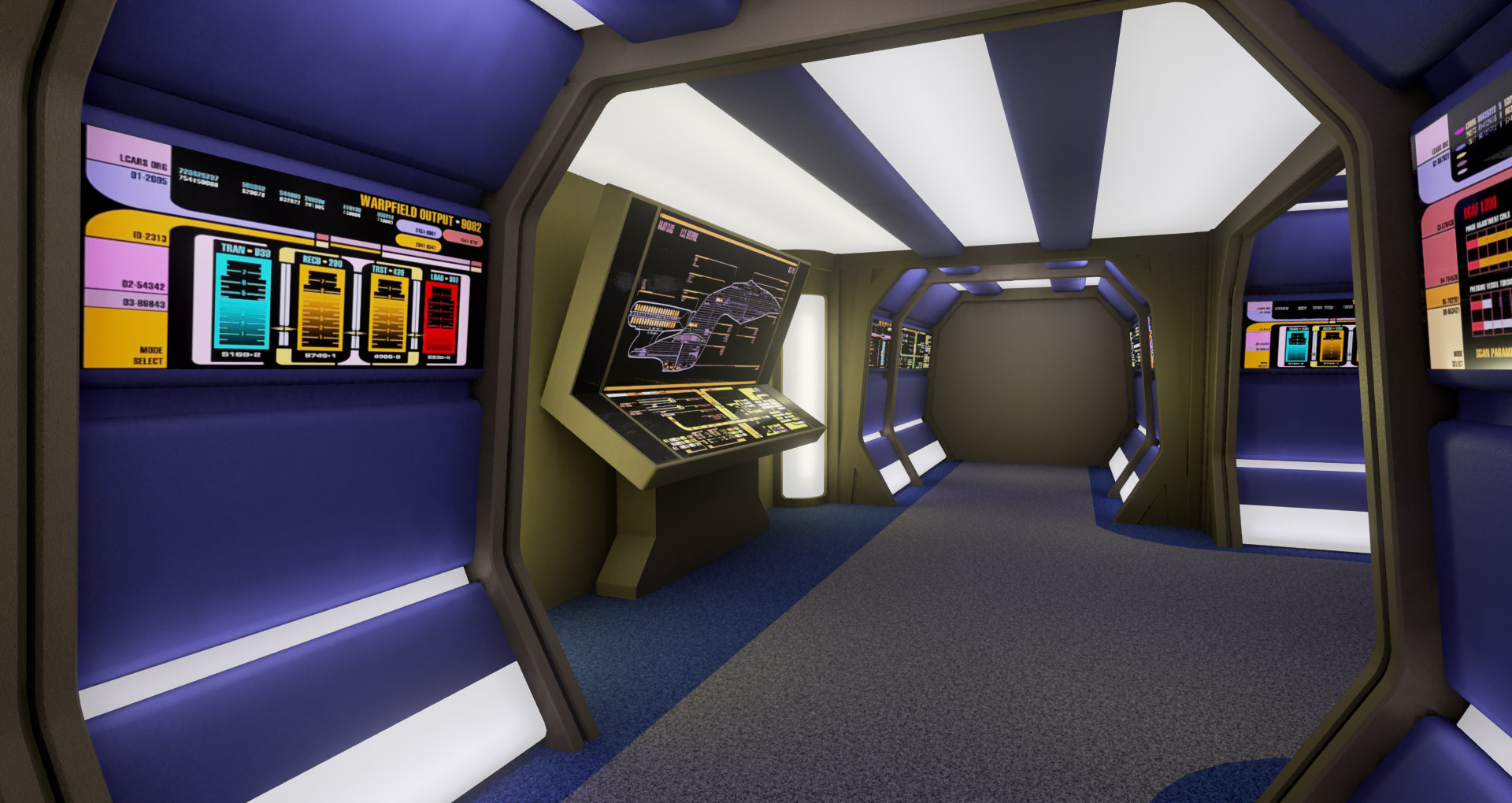 This is a modular environment representing an engine room hallway of the Star Trek starship Enterprise-D. It was created in fall 2015 during a 3D environment course taken at Uppsala University for my bachelors degree.