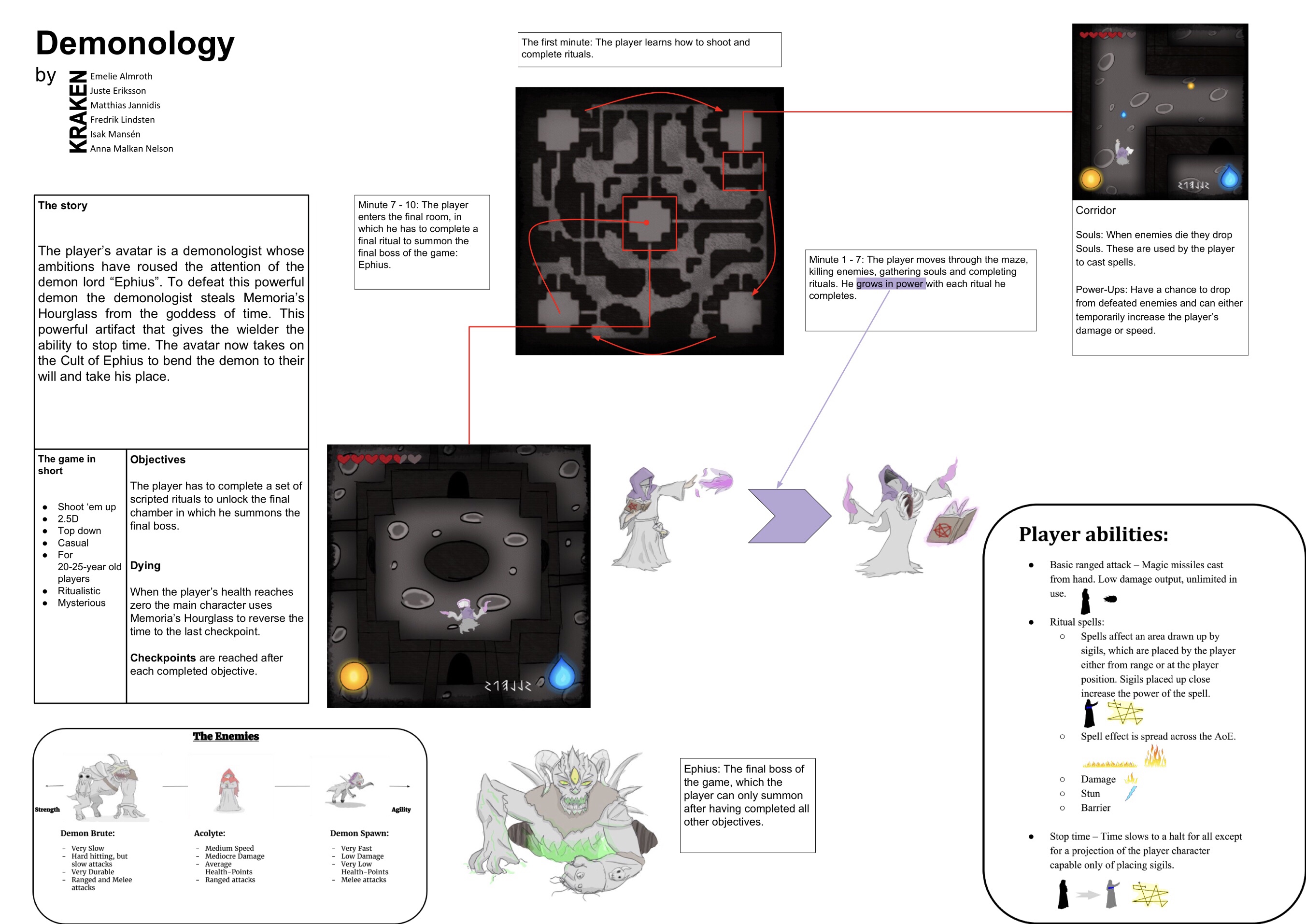 Game ConceptsFor the last past months group Kraken have been working on creating a concept for a shoot em up game based on the aesthetics they been given by the game institution. The aesthetics group Kraken were given was mysterious and ritualistic. Kraken named their game Demonology.DemonologyWhat is Demonology? |