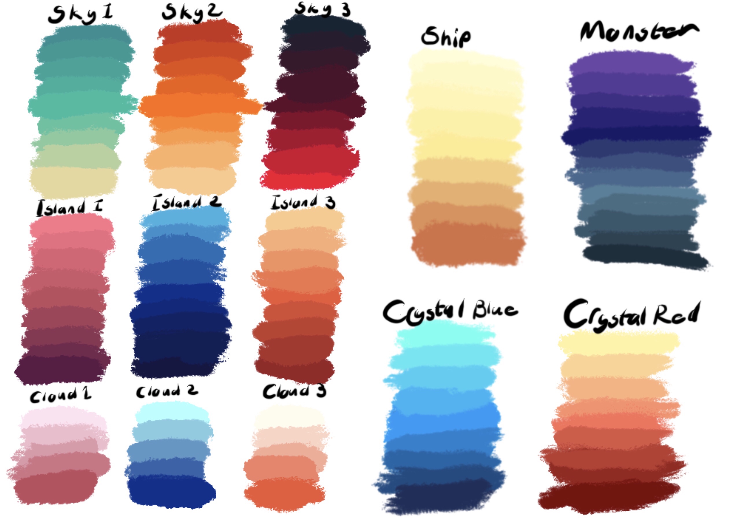Art Assets and ConceptsMaking a game is a team effort, so you have to make sure everyone is on the same page. As the led artist I wanted to make sure to create a game with the same felling and art style. So the first week I set out to create the art assets we were gonna use, a color palette and the brushes.Color Palette |